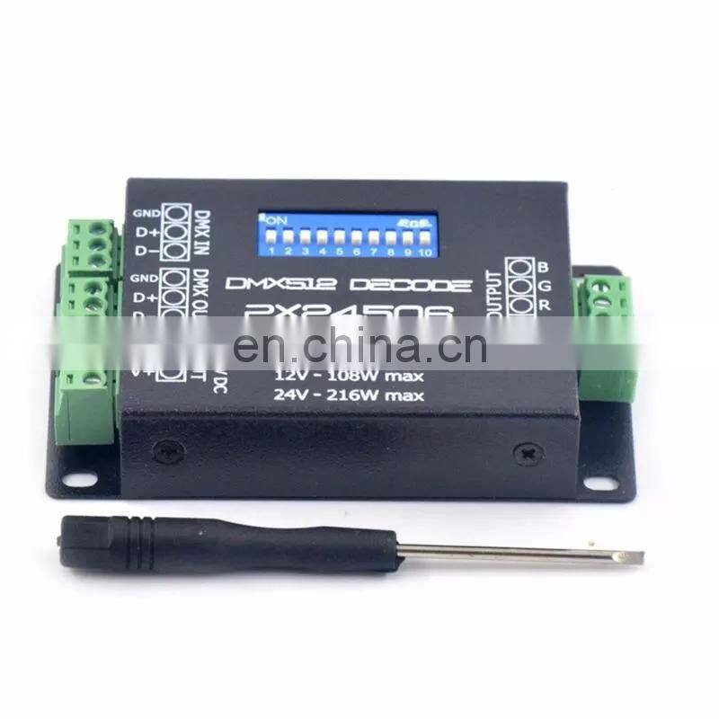 PX24506 DMX 512 Decoder Driver 9A DMX 512 Amplifier 12V 24V led DMX512 controller for RGB LED strip Lights