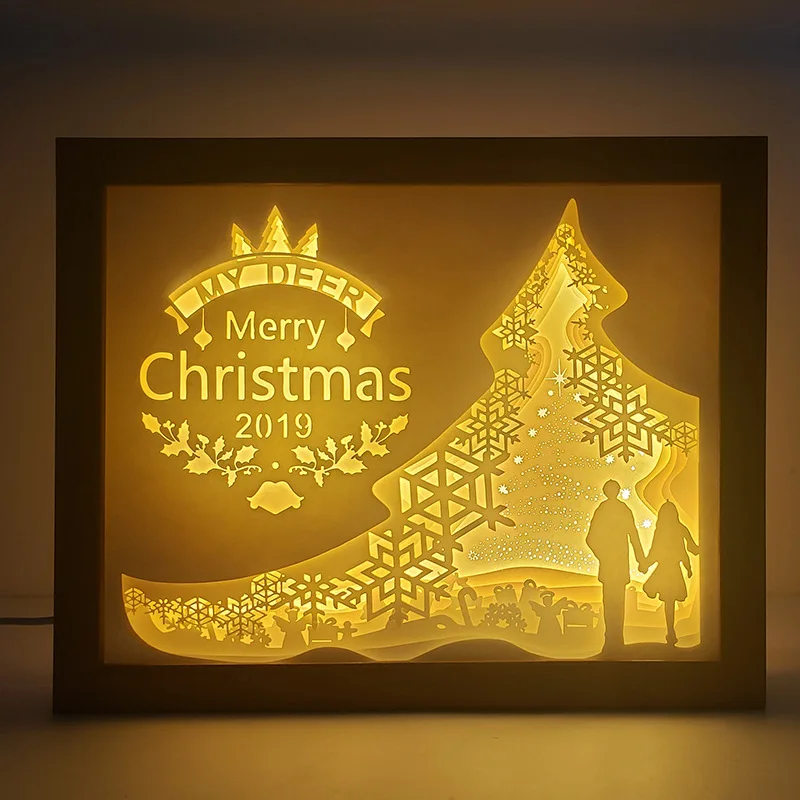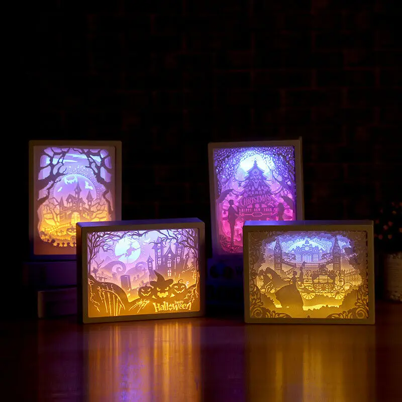 3D Light and Shadow Night Lamp Paper Carving Art Photo Frame Box