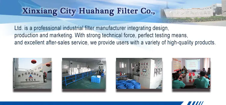 Xinxiang City Huahang Filter Co., Ltd is professional in the production of Hydraulic Filter, Air Filter and Pipe Filter.Product series range from Oil Filter, Air Filter, Water Filter, Polymer Filter, Candle Filter Element, Stainless Steel Filter to filter Coalescer and Separator. Product structure has tubular type, platy type, fold type, wraping type, sliding pillar type, frame type , cabas type,tank type and disc type,etc.. Our Filters are widely used in petroleum, metallurgy, textile, medicine, automobile, chemical fiber, airconditioning, food, water treatment industries.The high quality Filter Element which manufactured in our factory play a crucial role in energy saving, consumption & pollution reducing of the environment. All of our goods are Well received by the customers! Welcome your inquiry and visit us !