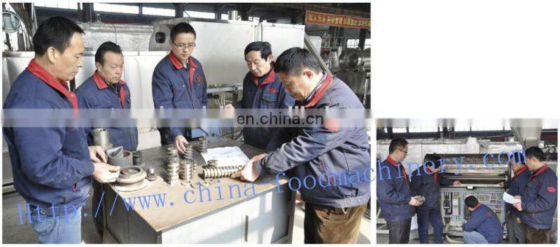 Double screw inflating extruder is the equipment which adopts the double screw technology together with our experience, in order to accord with the requirements of the food and relative industry's needs. It consists of feeding system, extruding system, cutting system, heating system and controlling system. It can process various materials, frequency speed-controlling high automation, stable performance and long lifetime.