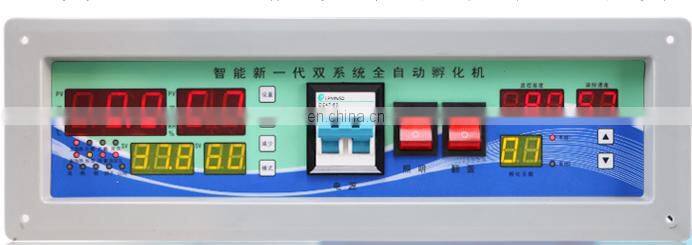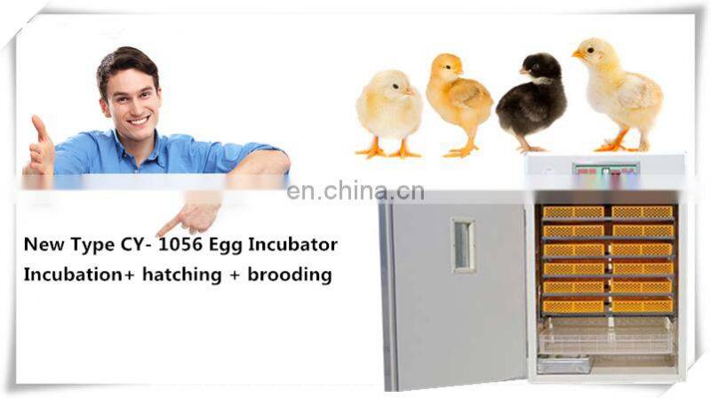 New type CY- 1056 Chicken egg incubator is a for Incubation, hatching and brooding by one machine , it is computer controlled system with full intelligence. It is designed for the incubation industry with employment of the latest type of microprocessor and electrical element. The processor used in this incubator controller is imported from Japan. The controller works with strong anti-jamming capability and high stability. The temperature sensor within it, which is imported from USA, measures in high precision and wide range. The high performance humidity sensor also works in high precision, and in addition, it could compensate the tempreature to make the performance more reliable. The four screens are designed in a user friendly way. Two of them show the temperature and humidity in real time. The other two provide the function for user setting the turn number and hatch period length, and displaying the temperature and humidity set before. In the meantime ,user can free to choose the customs ,chicken ,duck ,goose ,dove and pheasant incubation models .