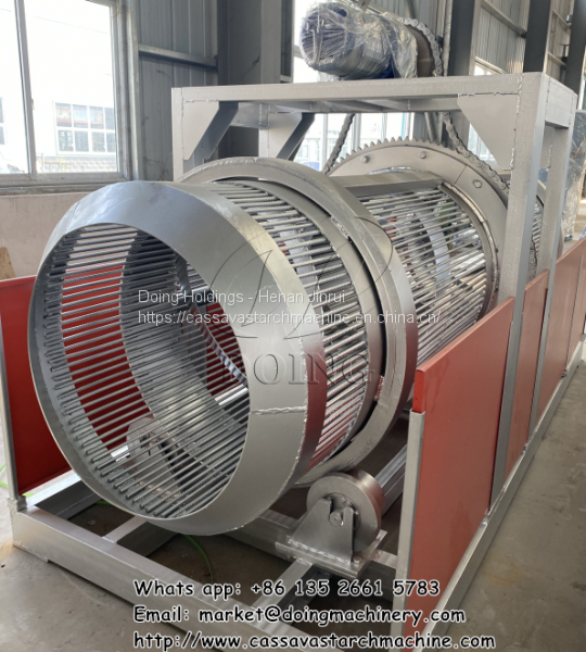 After the potato is put into the feeding hopper, it is conveyed by belt conveyor to dry sieve. Dry sieve removes impurities such as dirt, sand and weeds that are attached to the potato surface. After pre-cleaning potato with dry sieve, rotary washing machine further remove the sediment and other impurities on potato surface.