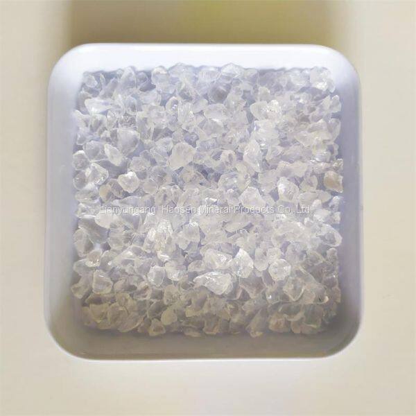 HS mineral adopts advanced production technology, selects high quality quartz stone, washes through water, breaks, sun drying / drying, removing impurity, mixing / melting, dry ball milling, classifying machine grading, removing impurity / compounding stirring, packing and storing.