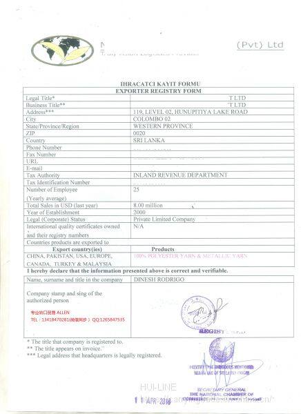 Sri Lanka re export yarn to Turkey CO and label samples: