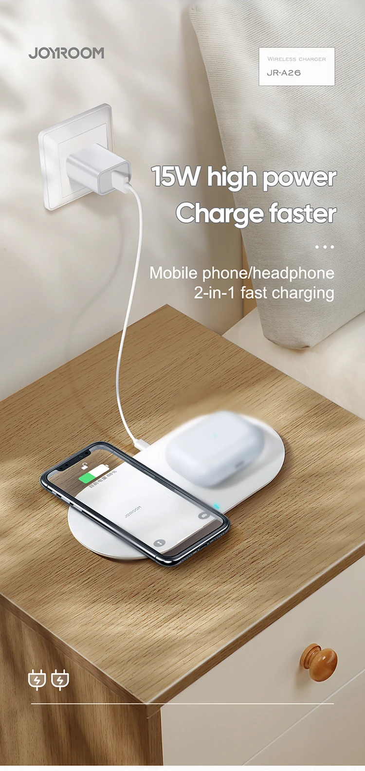 Joyroom 2 in 1 Wireless Charger for Mobile Phone and Earphone Wireless Fast Charger