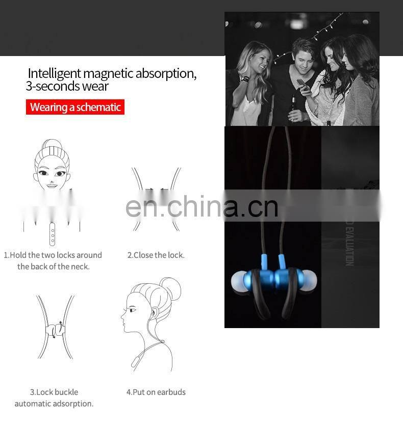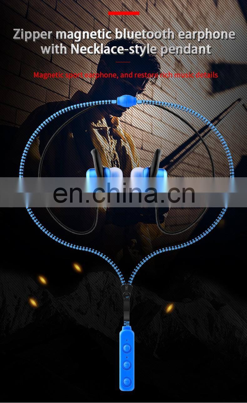 New Product 2019 Hifi Stereo Voice Necklace Zipper Magnetic Bluetooth Wire Earphone