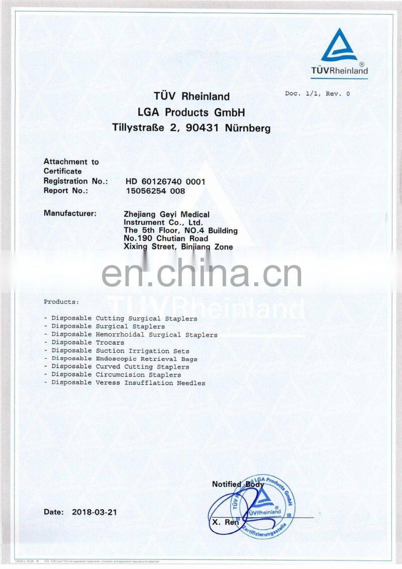 1.Zhejiang Geyi Medical Instrument Co., Ltdlocated in Hangzhou, Zhejiang, China. is a professional enterprise integrating the research and development, design, production and sale of disposable surgery instruments such as belly, urinary and anorectum instruments, and endoscope.