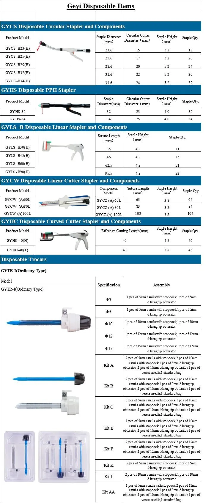 1.Zhejiang Geyi Medical Instrument Co., Ltd.,is a professional manufacturer in disposable surgical instruments (diposable trocars, surgical staplers,etc.) and reusable surgical instruments used in laparoscopy,urology, gynecology and general surgery, with trademark 'Geyi' and 'Euprun'. We have two factories, one is for disposables and the other is for reusables. with more than 100 empolyees, we've been working with distributors, traders, hospitables, clinics, doctors from more than 50 countries.