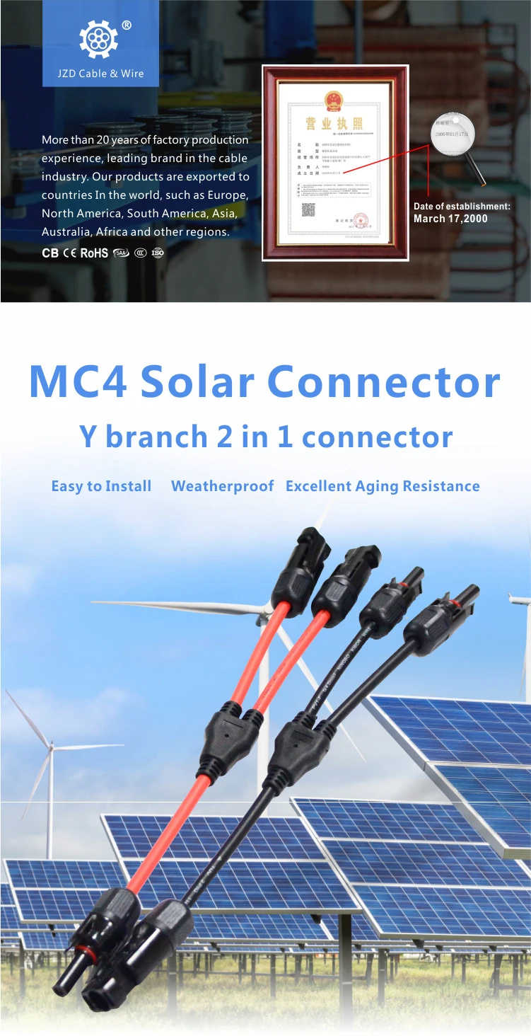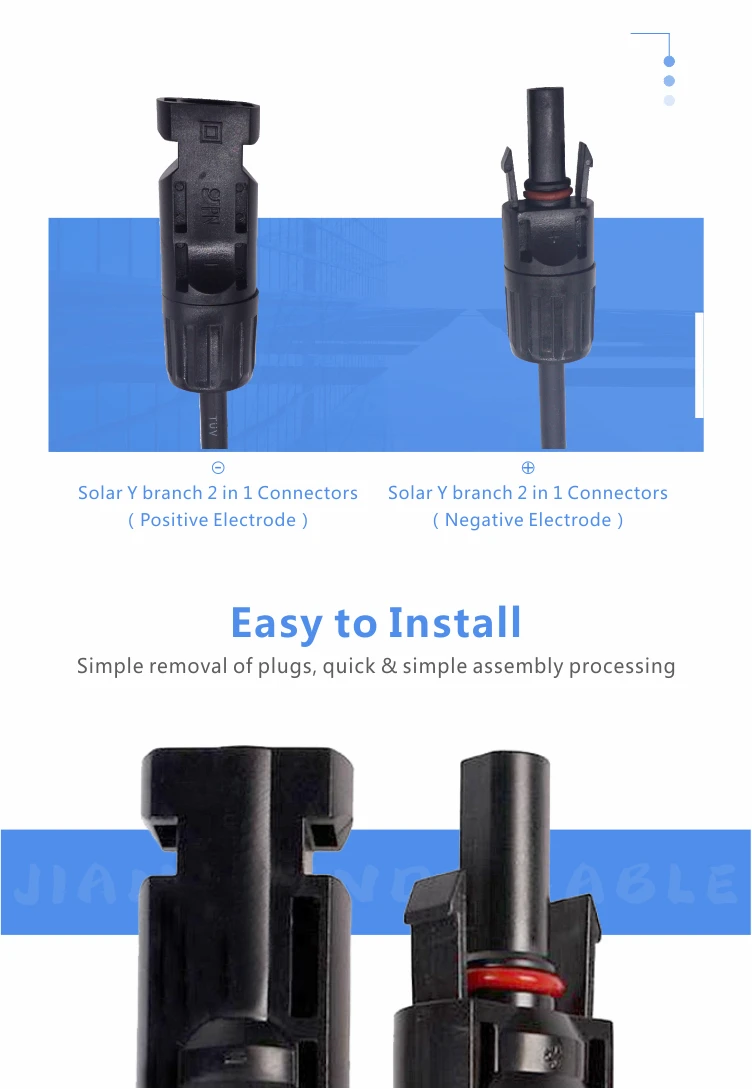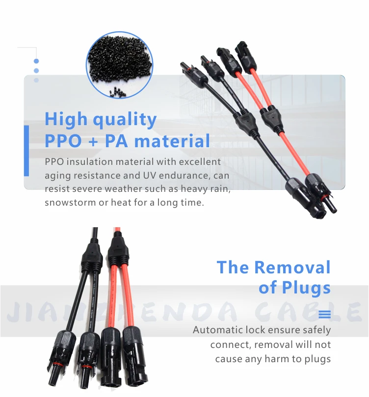 3. These y cable is designed to complete a solar panel (PV)array, typically in parallel applications. Red to red, black to black, Better to recognize polarity.