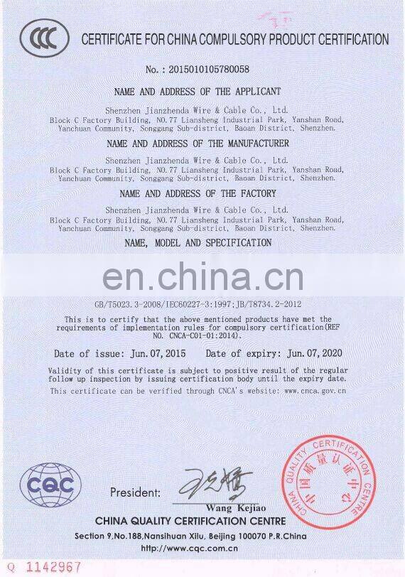 JZD CABLE 's products have been sold well all over the world and have won the National Compulsory CCC certification and industrial production license. Meanwhile, our quality management is certificated by the ISO9001-2008 quality management system and successively achieve the honor such as China famous products, Quality trustworthy product and so on.