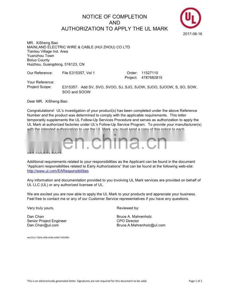 SJOOW Cable for USA 3 Core Flexible Electric Wire Cable With Low Price