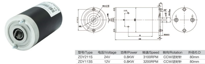 ZDY113S | 24V | 800W | 3100RPM | CCW | 80MM | 2.5KG |