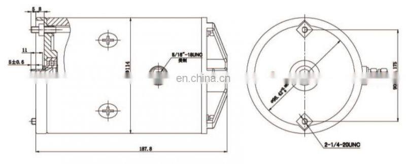 Outline Dimension of 2500RPM Forklift DC Motor 12V 2HP