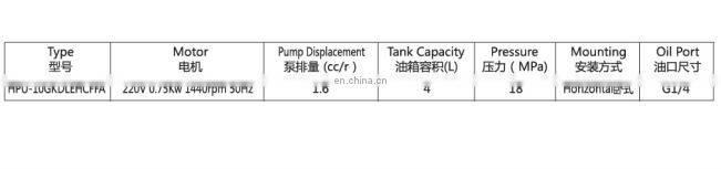 2. The power unit is of S3 duty, which can only be worked intermittently, i.e.1 minute on and 9 minutes off.4..Viscosity of the hydraulic oil should be 15-68 cst,which should also be clean and free of impurities. N46 hydraulic oil is recommended.