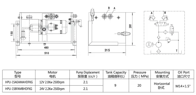 Hydraulic Power Units/pack for Tail Gate Car Lift With 12volt dc Motor 2000w 2.1cc/r