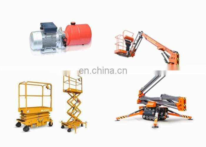 Equiped with a high pressure gear pump, a DC motor, a multi-functional manifold, valves and a tank, etc. Specially designed for Electric Work Platform, with the function of power lift and gravity lowering. The fixed compensated valve maintaining, the lowering in steady speed.