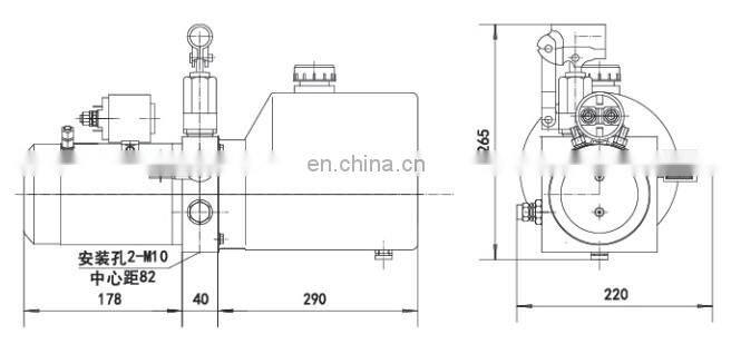 This power unit is designed exclusively for small tipper, consisting of high pressure gear pump, DC motor, multi-functional manifold, valves, tank, etc. The hand pum with a displacement of 8cc per stroke works as a backup power source of lifting the tipper in case of power failure with the lowering movement, which is activated by the solenoid valve.