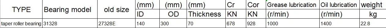| Model Number | 31328 27328E | Number of Row | Single Row | |