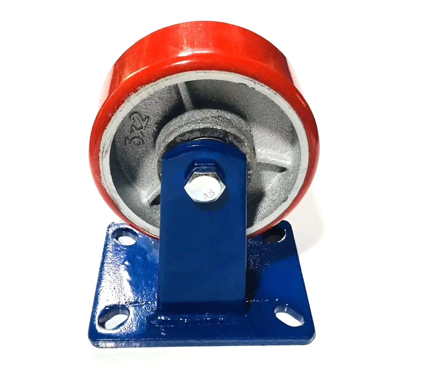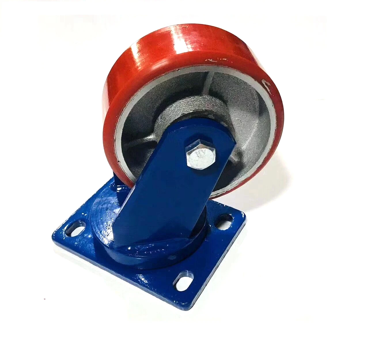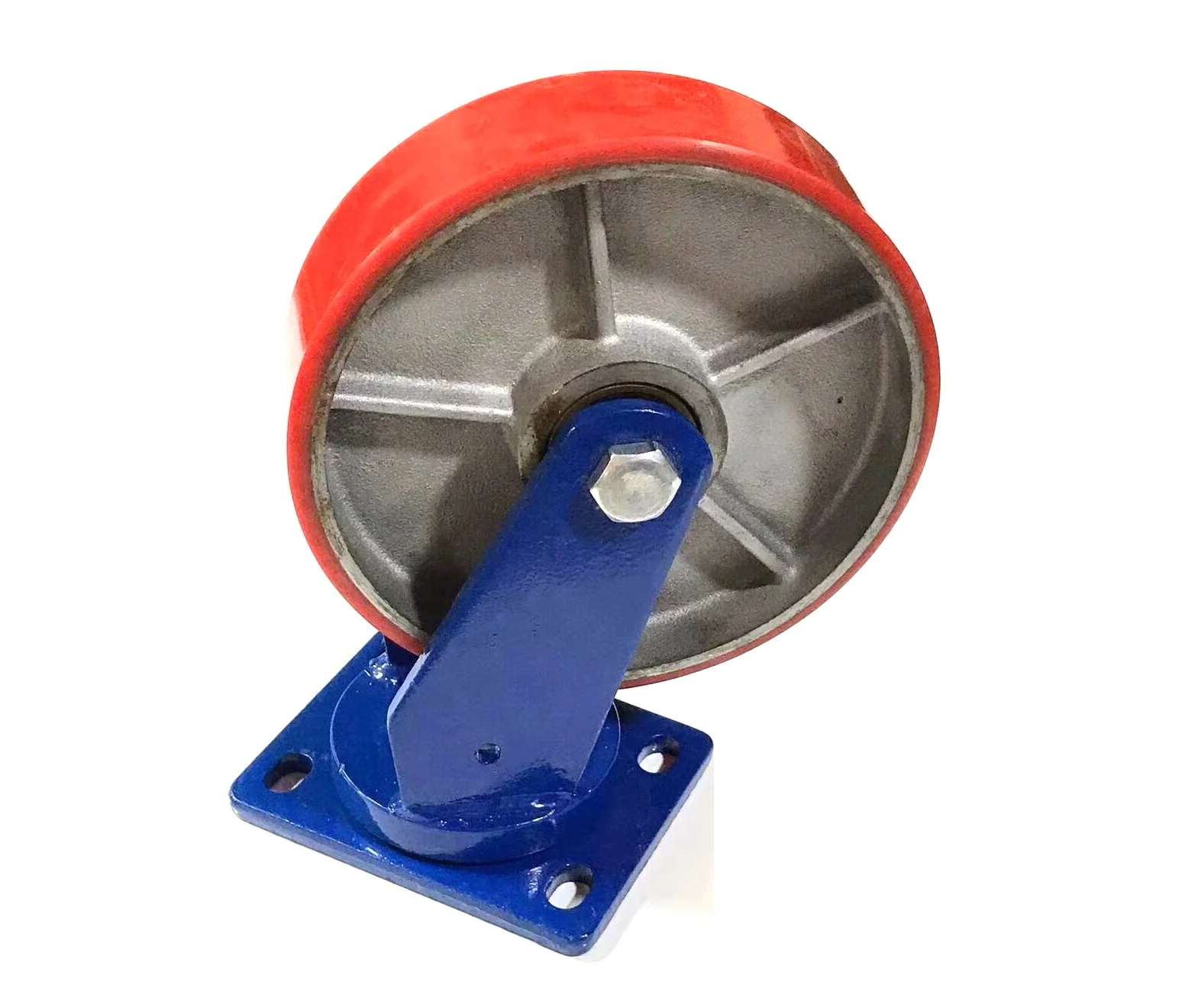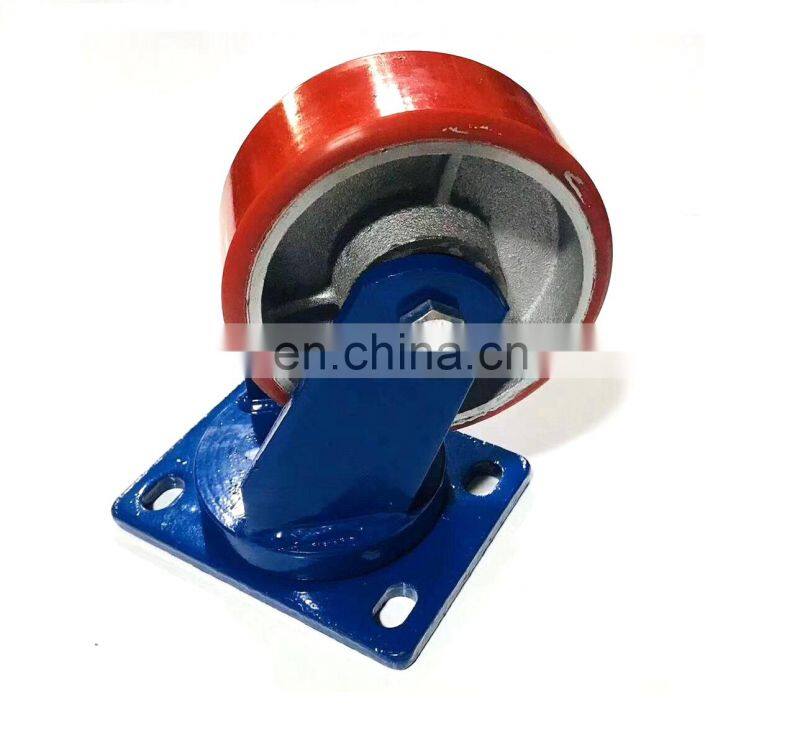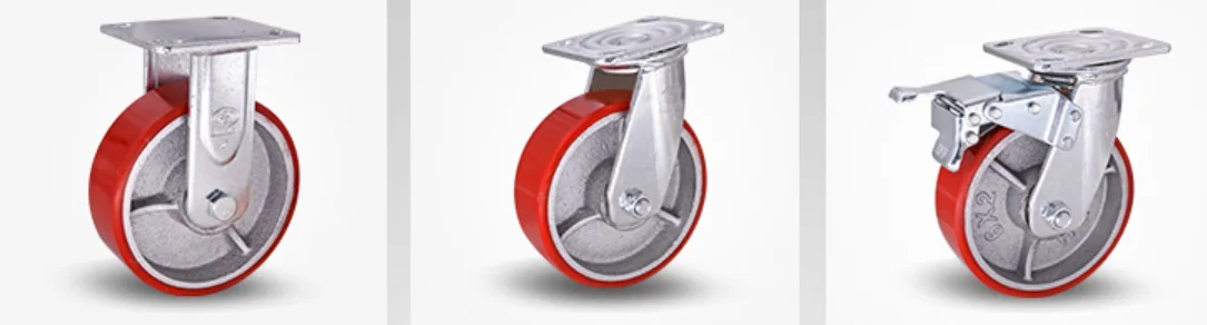 Extra Heavy load cast steel 0.6mm steel shaft turnable brake PU castor roller wheel