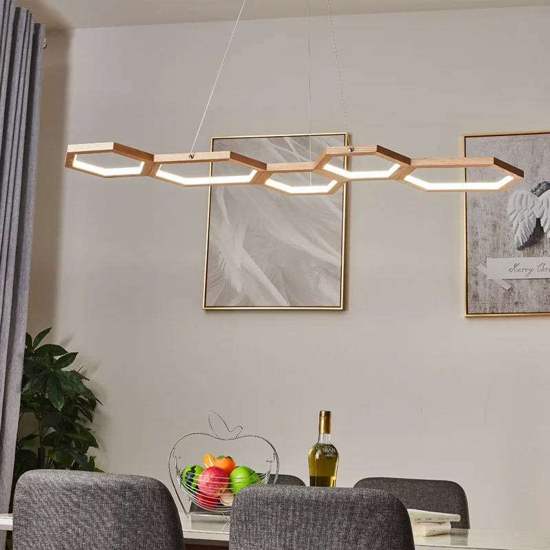 Modern Home Dining Room LED Wooden Pendant Light Hanging Lamp