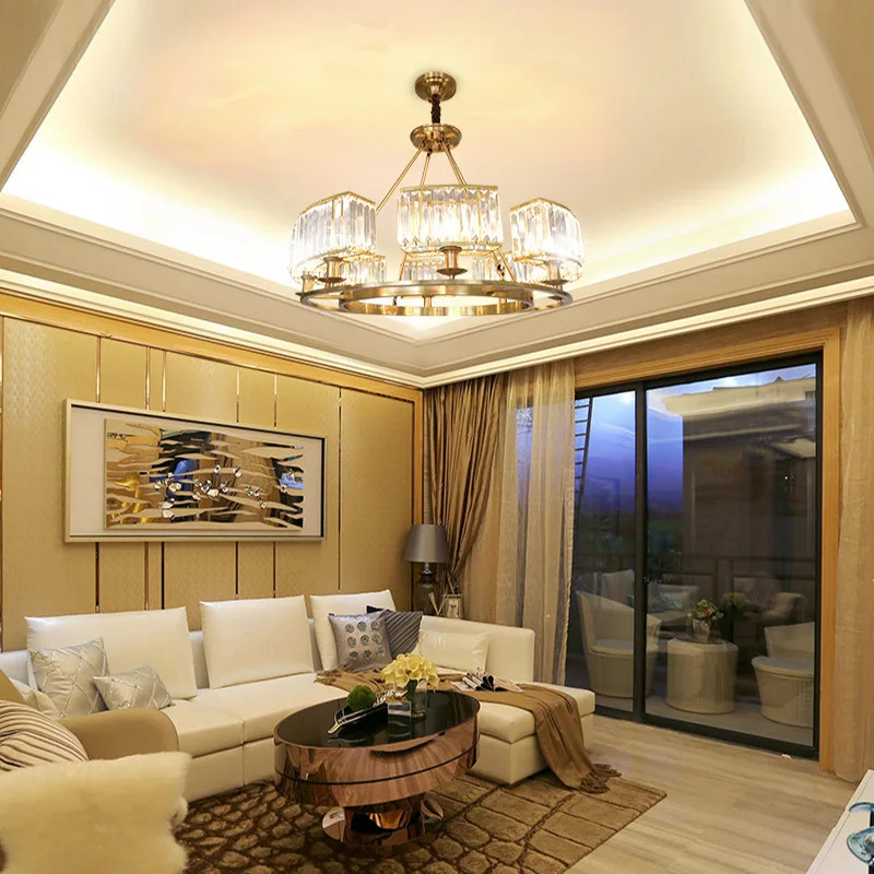 Modern K9 Crystal Chandelier Gold Crystal Living Room Chandelier Lighting
