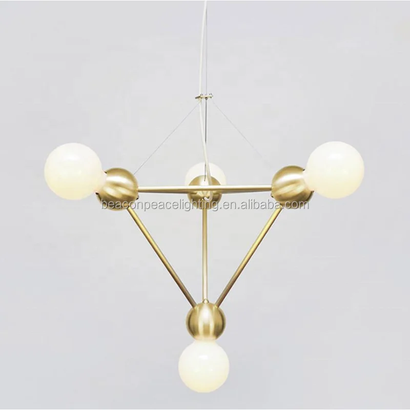 Modern Nordic Retro Decorative Gold Bronze Frame Round Ball Glass Chandelier Pendant Lamp