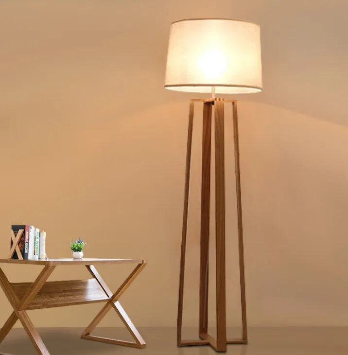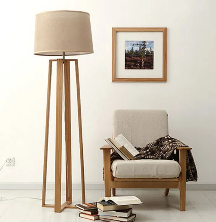 Wood and Fabric Tripod Floor Lamp Standing Lamp Lighting