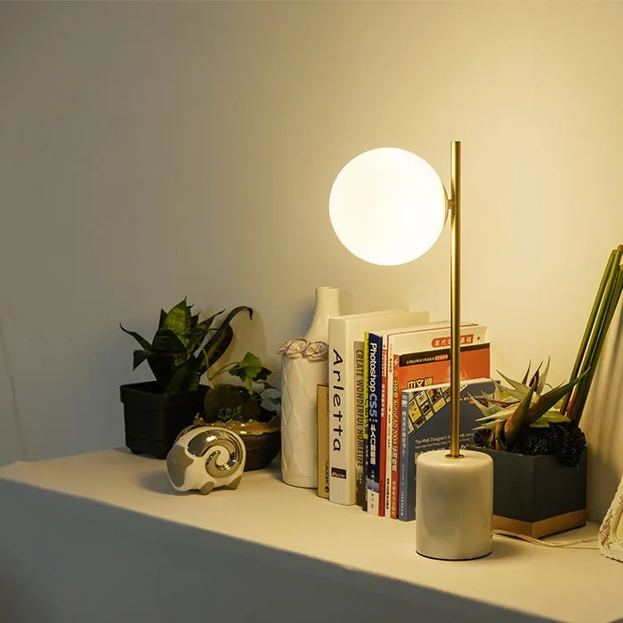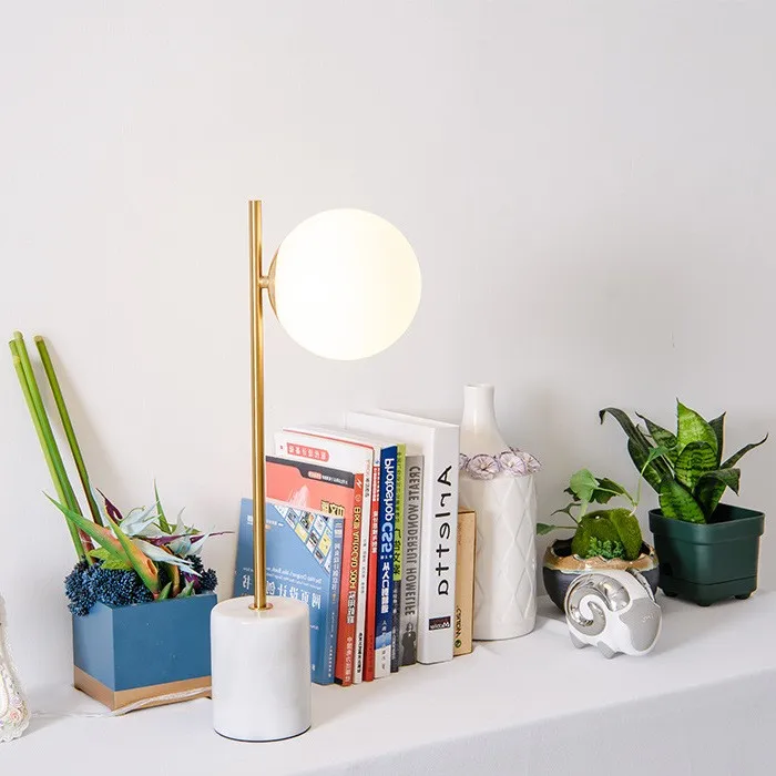 Modern Marble Base Gold Metal Glass Ball Restaurant Table Lamp