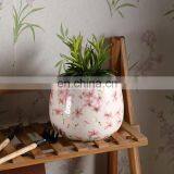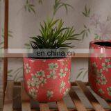 Home Decoration Item Flower Pattern Indoor Outdoor Large Pink Ceramic Plant Pots for Livingroom Balcony