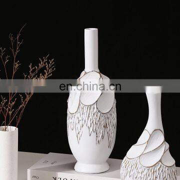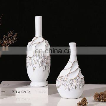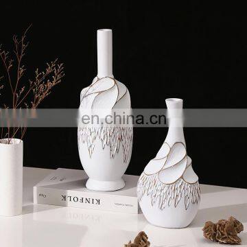New Arrival Exquisite Hand-made Hotel Living Room Craft Furnishings White Creative Resin Flower Vase
