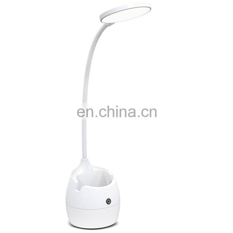 Eyes Protection USB Pen holder table lamp ,Touch switch control(Tri-color stepless dimming,Light color and brightness are adjustable)