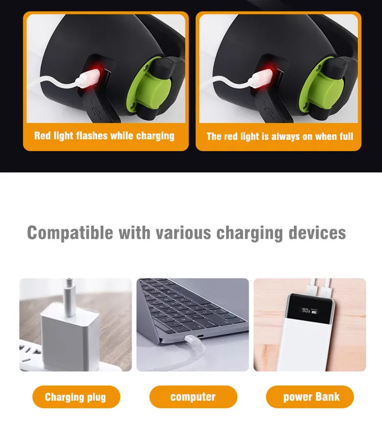 Support multiple charging methods, such as socket power supply, computer power supply, power bank power supply, etc.