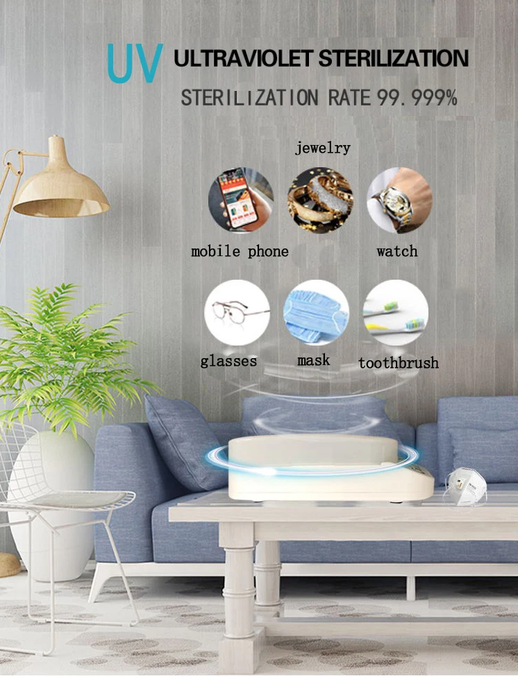 Smart UV disinfection box, with wireless charging of mobile phone, with 5 major functions: