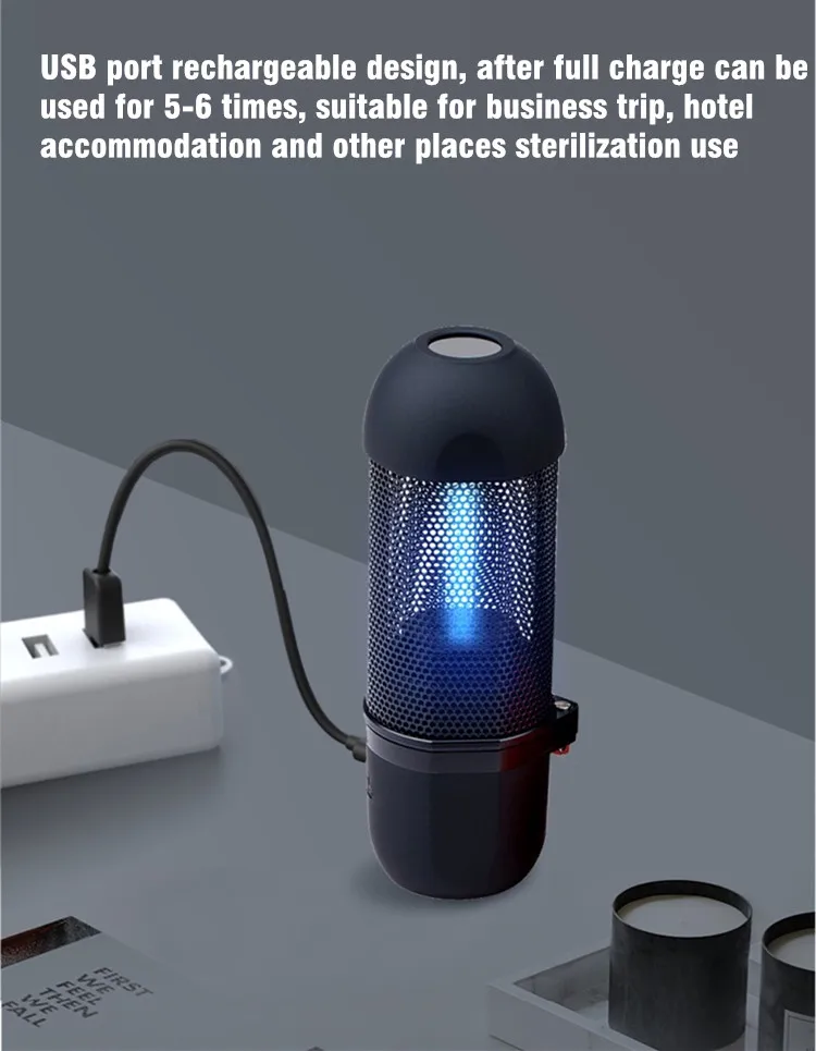 • Built-in automatic timer switch. When the germicidal lamp works for 10 minutes, it will automatically turn off.