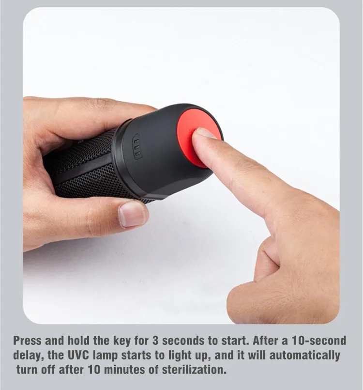 • Simple operation, just press the switch button for 3 seconds to disinfect.