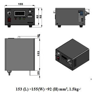 Modulation option | TTL on/off, 1Hz-1KHz, 1KHz-10KHz, 10KHz-30KHz; and Analog modulation option | ||