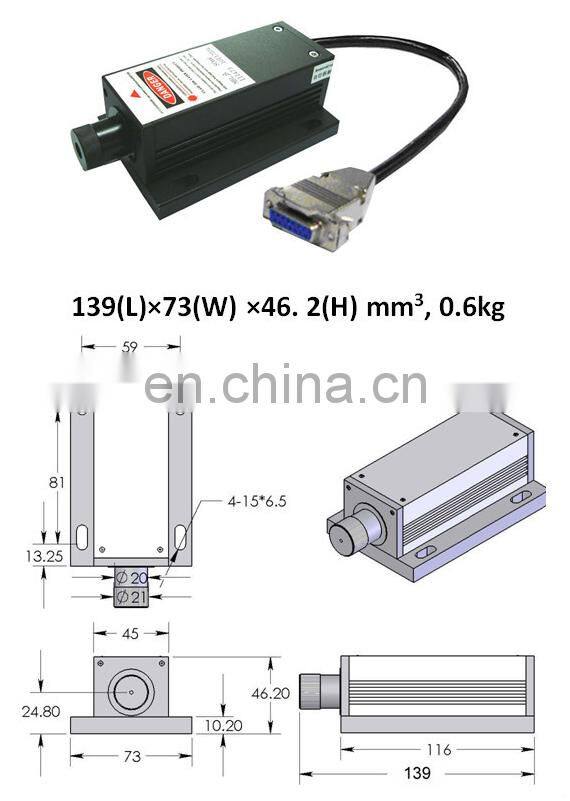 All solid state single longitudinal mode green laser at 532 nm is made features of ultra compact, long lifetime, low cost and easy operating, which is used in DNA sequencing, flow cytometry, cell sorting, optical instrument, spectrum analysis, interference, measurement, holography, physics experiment, etc.