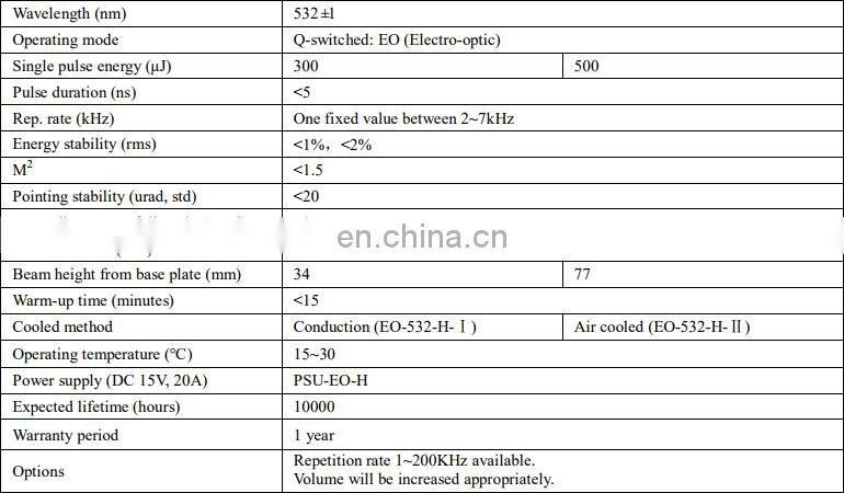 High energy diode pumped all solid state Q-switched laser at 532nm has the features of high single pulse energy, short pulse duration,and high peak power, which is widely used in radar, topography measurement, ranging,scientific research, and so on.