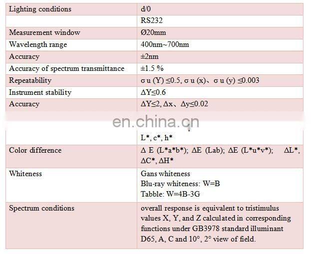 2. Measure reflection color and transmission color of objects and can test chromaticity, whiteness and color difference between two objects or two kinds of liquid.