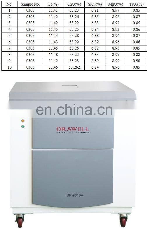 l DW-BP-9010A is very suitable for quality process control in large, medium and small cement plants (single and double kilns). It can be used for the analysis of primary and secondary oxides in raw materials (such as limestone, sand, bauxite, magnesite and other minerals);Determination of CaO, SiO2, Al2O3, Fe2O3, MgO, SO3, K2O, Na2O, Cl and other conventional elements in raw materials, clinker and cement.