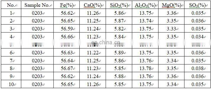 Sinter: Repeat test 10 times for samples taken from the steel plant