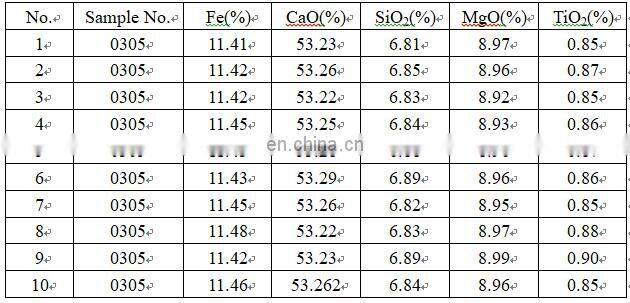 Slag: Repeat test 10 times for samples taken from the steel plant
