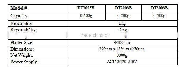 DT-B series Load Cell Analytical Balance( 1mg; External Calibration)