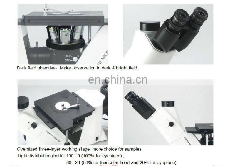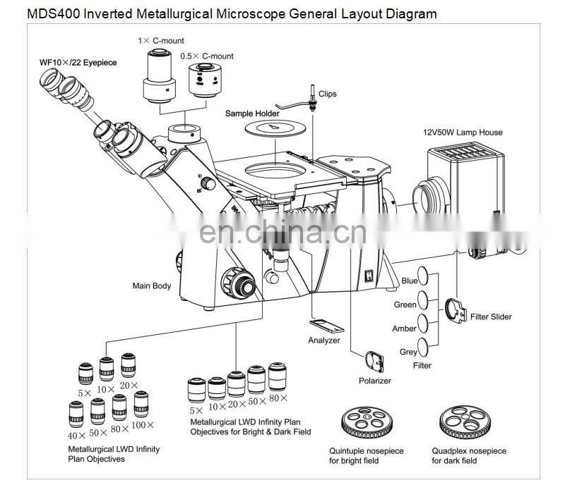 Seidentopf Trinocular Head | Inclined 30°, interpupilary distance: 48-76mm Light distribution (both):100: 0(100% for eyepiece) 80:20(80% for trinocular head,and 20% for eyepiece) | Y | Y | |