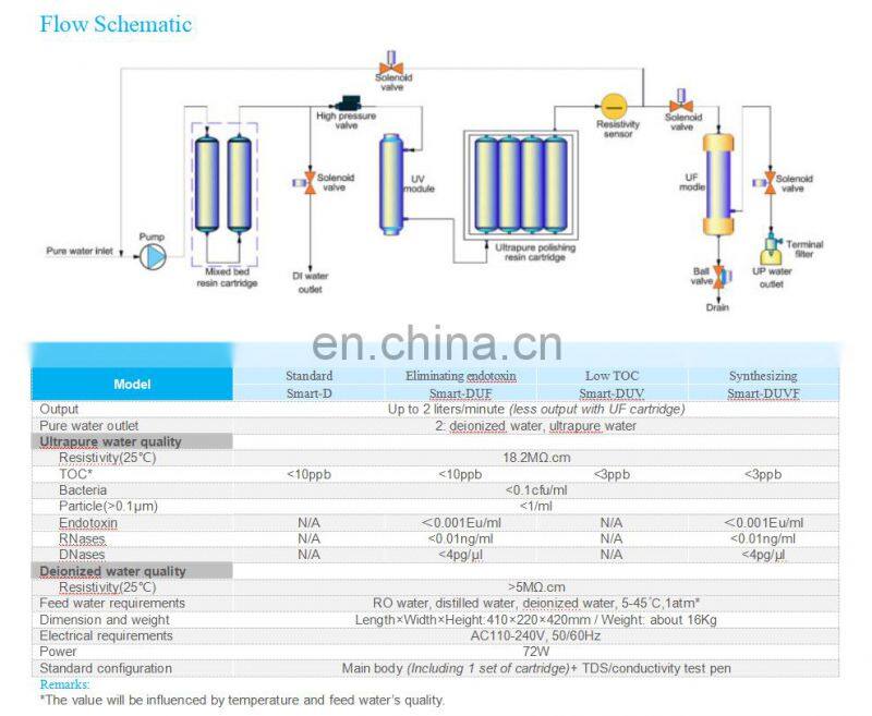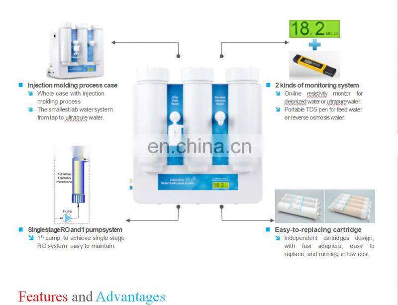 n The smallest and most compact lab water system from tap to ultrapure water, integrating pretreatment, RO, DI, UV, UF and terminal filter into one.