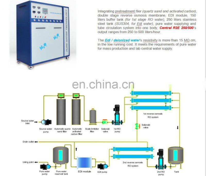 Home > Products > Water Purification > Central R2E 250/500 Series ro Water Filter System Deionized Water Treatment Plant for Lab