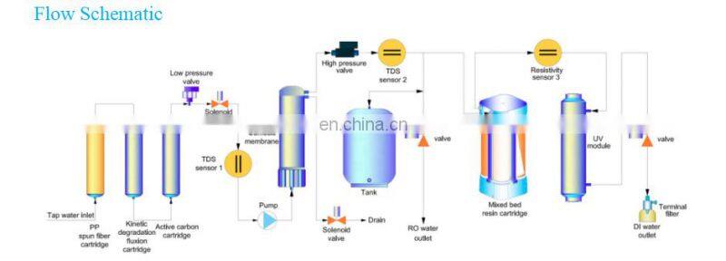 Multiple alarm function: no feed water, full water, water quality’s standard exceeding, and cartridge life ending.