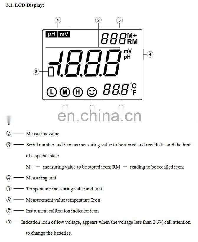 1. Built-in microprocessor chip, with the intelligent functions of automatic calibration, automatic/manual operation temperature compensation, data storage, function setting and automatic self-diagnose, auto power off and low voltage display etc. Equips with calibration solution and special carrying case, easy to use.