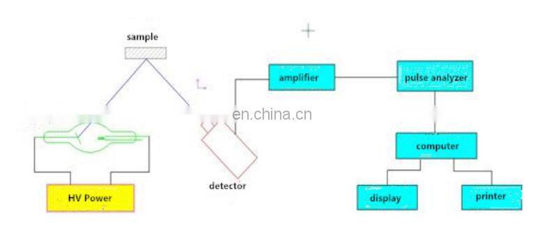 The original X-ray produced by X-ray tube and high voltage is irradiated on the sample after being properly filtered by the optical filter. The characteristic X-ray (called X-ray fluorescence) of the elements contained in the sample is stimulated. X-ray fluorescence spectra were obtained by using X-ray detectors with high energy resolution. Different elements formed different spectral peaks on the spectra.The strength of the spectral peak is directly proportional to the content of elements in the sample. The energy spectrum detected by the detector is analyzed by the computer. The types of elements contained in the sample are qualitatively analyzed by the position and shape of the spectral peak.