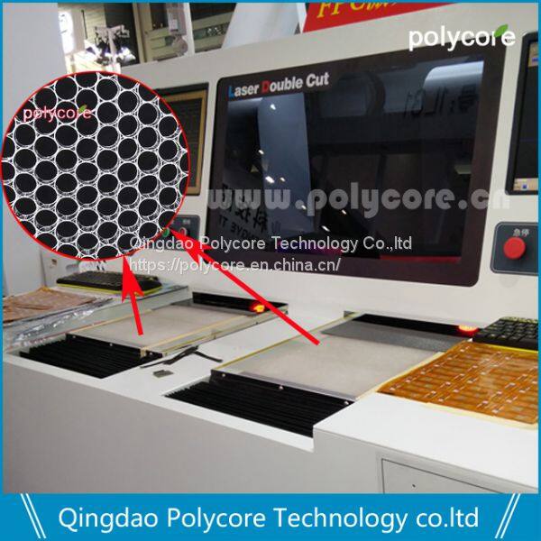 Polycore PC honeycomb with uniform corecell stand tightly by each other,the thickness is strictly definitely, surface is smooth,so it's best honeycomb plate for Laser cutting machine to cut flexiable Printed Circuit (FPC).